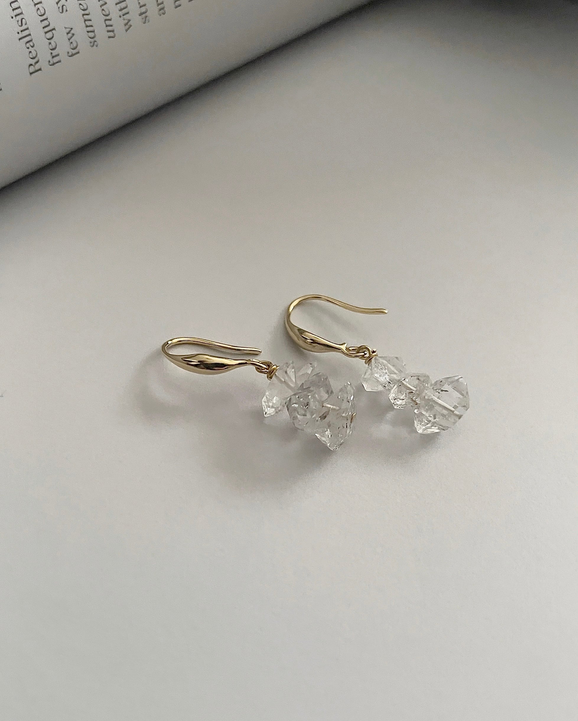 高い透明度と繊細な輝きが魅力のNY産ハーキマーダイアモンドを使用し、自然の美しさをそのままアクセサリーに。