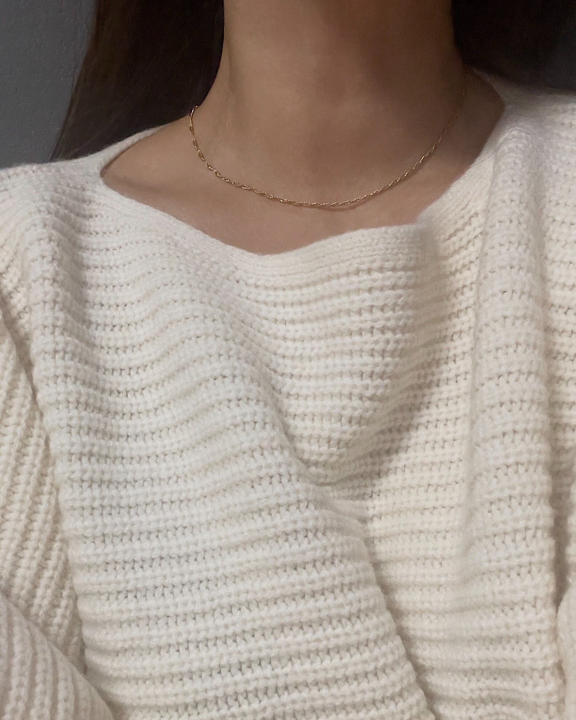 ゆったりとした波を描くチェーンが光を受けて、動くたびに優雅にかがやく。